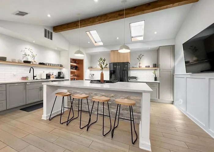 A acomodação de Houston inclui cozinha totalmente equipada, bem como zona de refeições para refeições auto-suficientes. Há também chaleira elétrica, refrigerador e utensílios de cozinha para preparar a sua própria refeição. Os hóspedes podem desfrutar de pratos da cozinha Aziatische em Crawfish & Noodles, localizado a 18 minutos de distância a pé. O aeroporto mais próximo da Open Airy Custom Designed Home - 2Kings - Sleeps 14 é em Houston Hobby, localizado a 45 km.